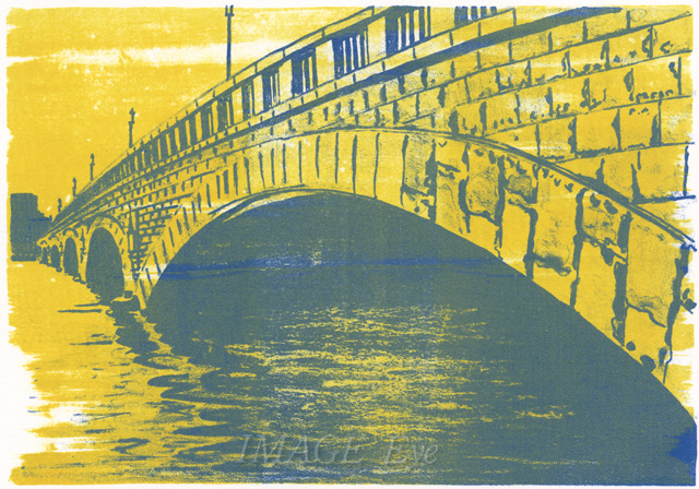 リトグラフ 版画 新潟の風景 新潟県 新潟市 萬代橋 重要文化財 アーチ橋 照明灯 橋側灯 アップ 力強さ 存在感 重厚 景観 シンボル 朝陽 朝日 信濃川 日本一長い川 川面 水面 映る 秋 10月 ST1-3666E